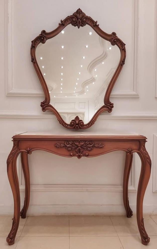 يُضفي كونسول كلاسيك لمدخل البيت من واحة الأثاث لمسة من الرقي تجمع بين التصميم العملي والأناقة العريقة. مصنوع من الخشب الزان المصري المعروف بمتانته ومطعّم بسطح رخامي فاخر، ليمنحك قطعة أثاث متينة تدوم طويلاً وتضيف قيمة بصرية للمكان. يتوفر المنتج بعدة ألوان لتتكامل بسهولة مع أي ديكور داخلي، كما يأتي بأبعاد مدروسة لتناسب المساحات المختلفة مع مرآة تضيف إحساساً بالرحابة والضياء.